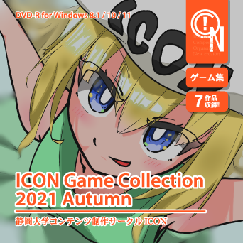 静岡大学コンテンツ制作サークル「ICON」メンバー制作のゲームが7本収録されたDVD-Rです。私が開発した「QubeFall」と「プロ生早押しクイズ for Windows」が収録されています。また、イラスト除くパッケージデザインを担当しました。